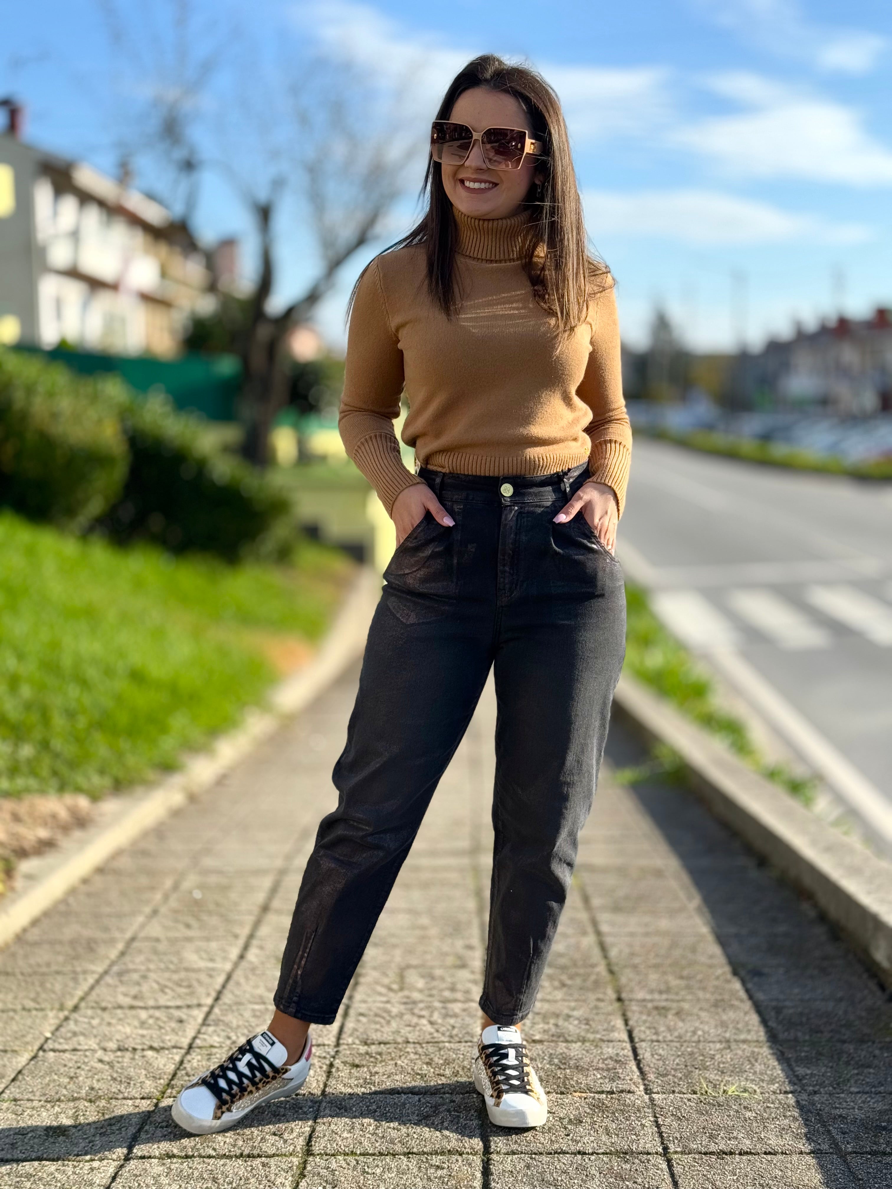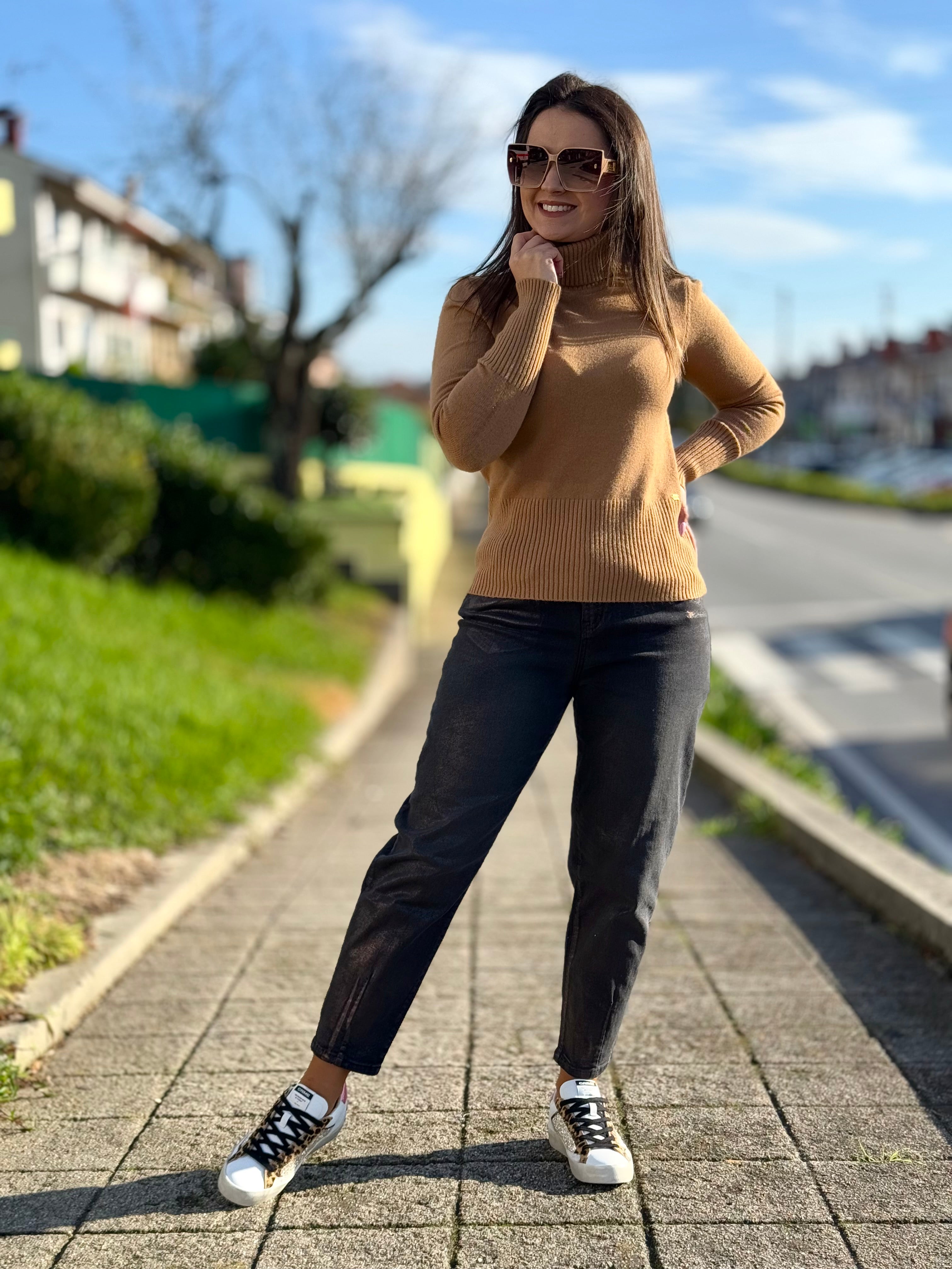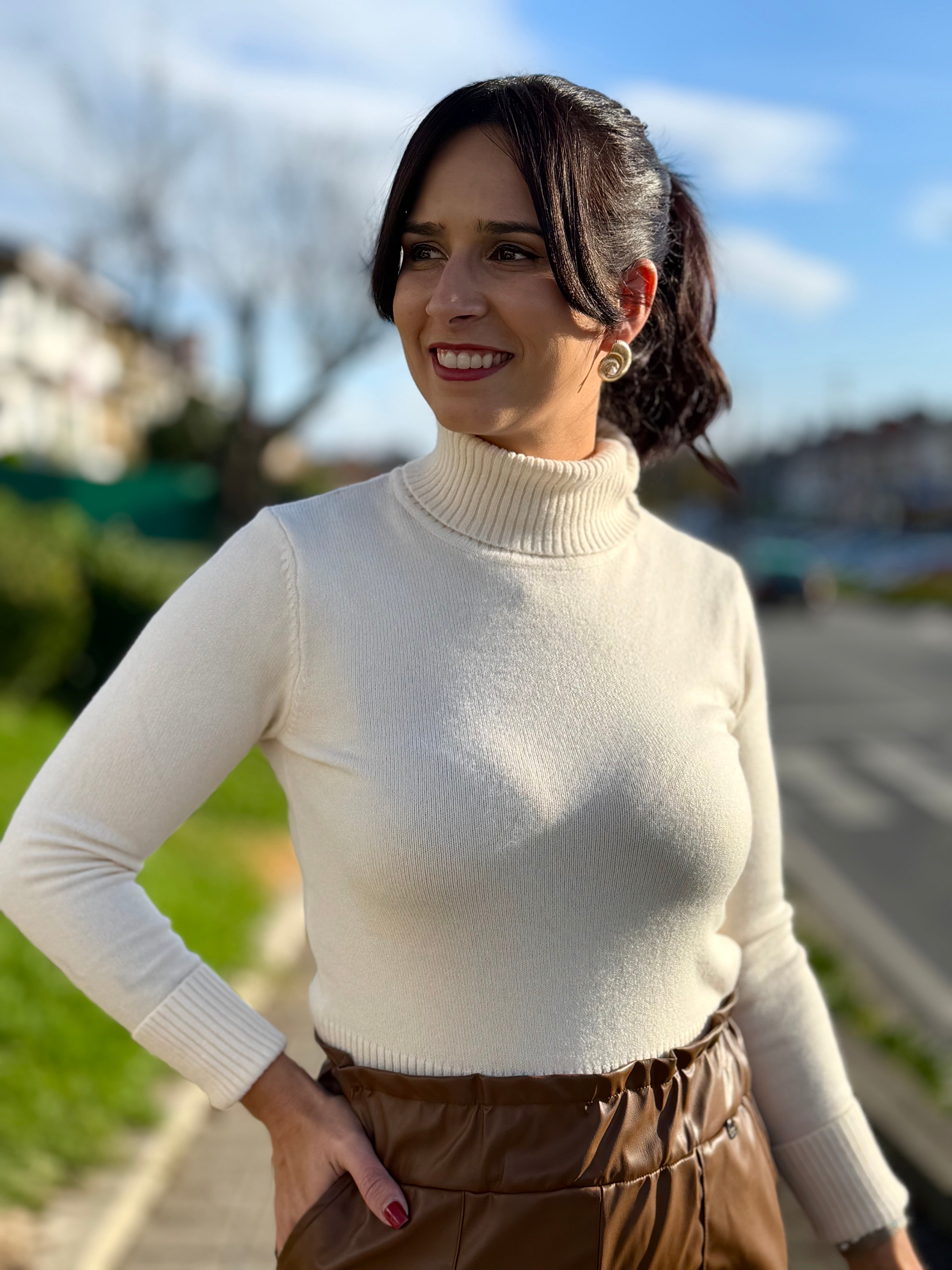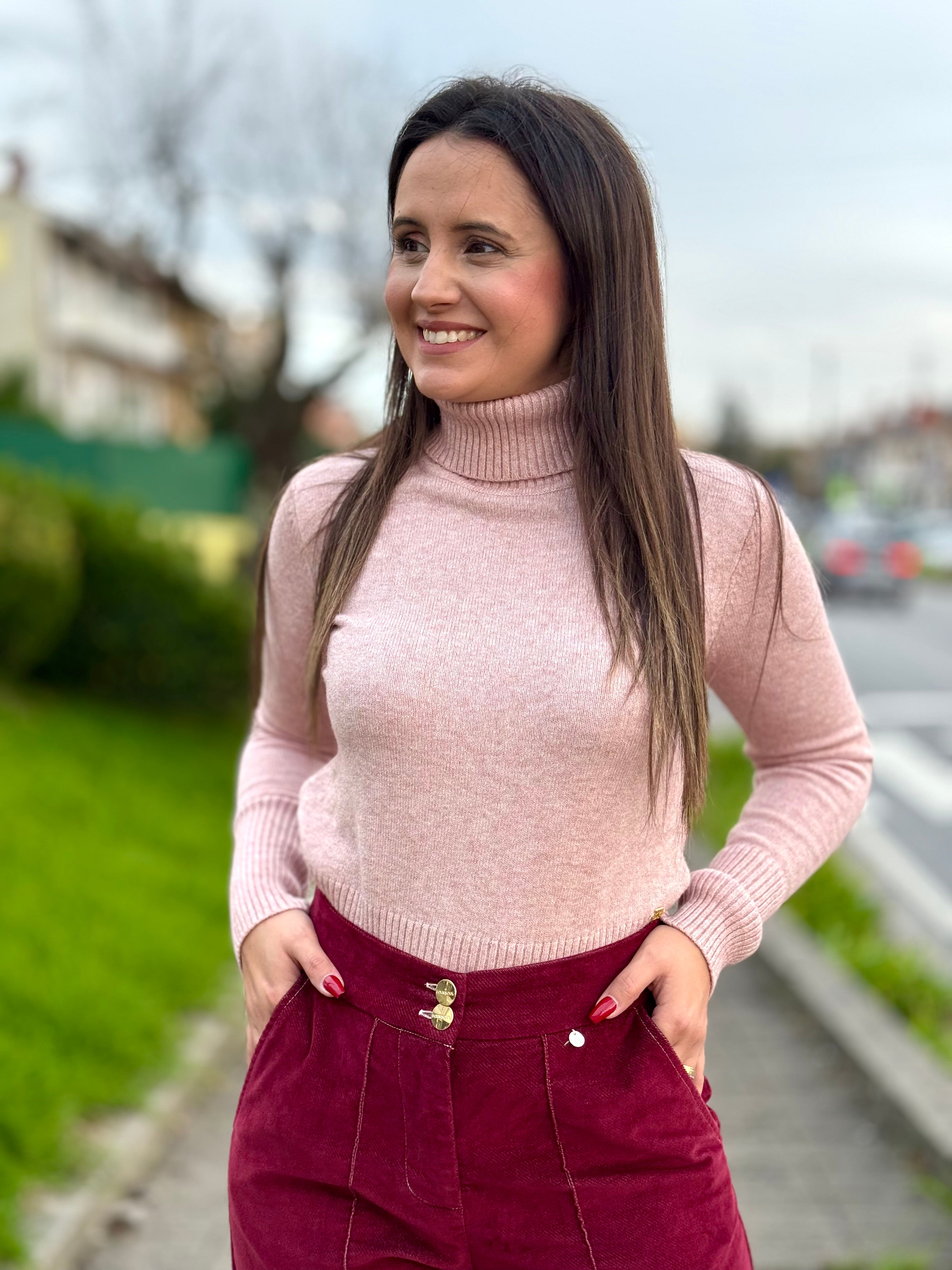 Camisola de malha corte justo com gola alta
