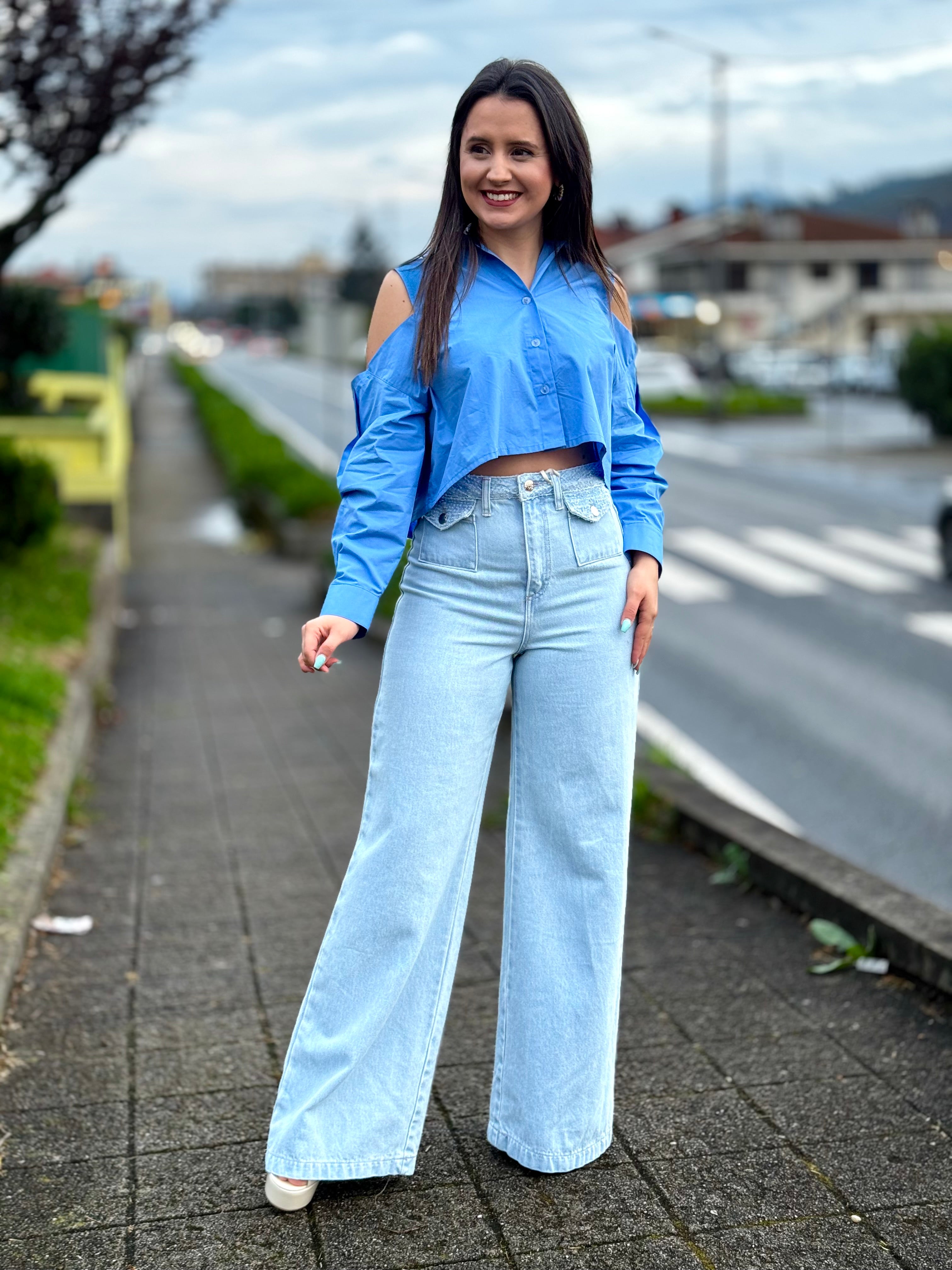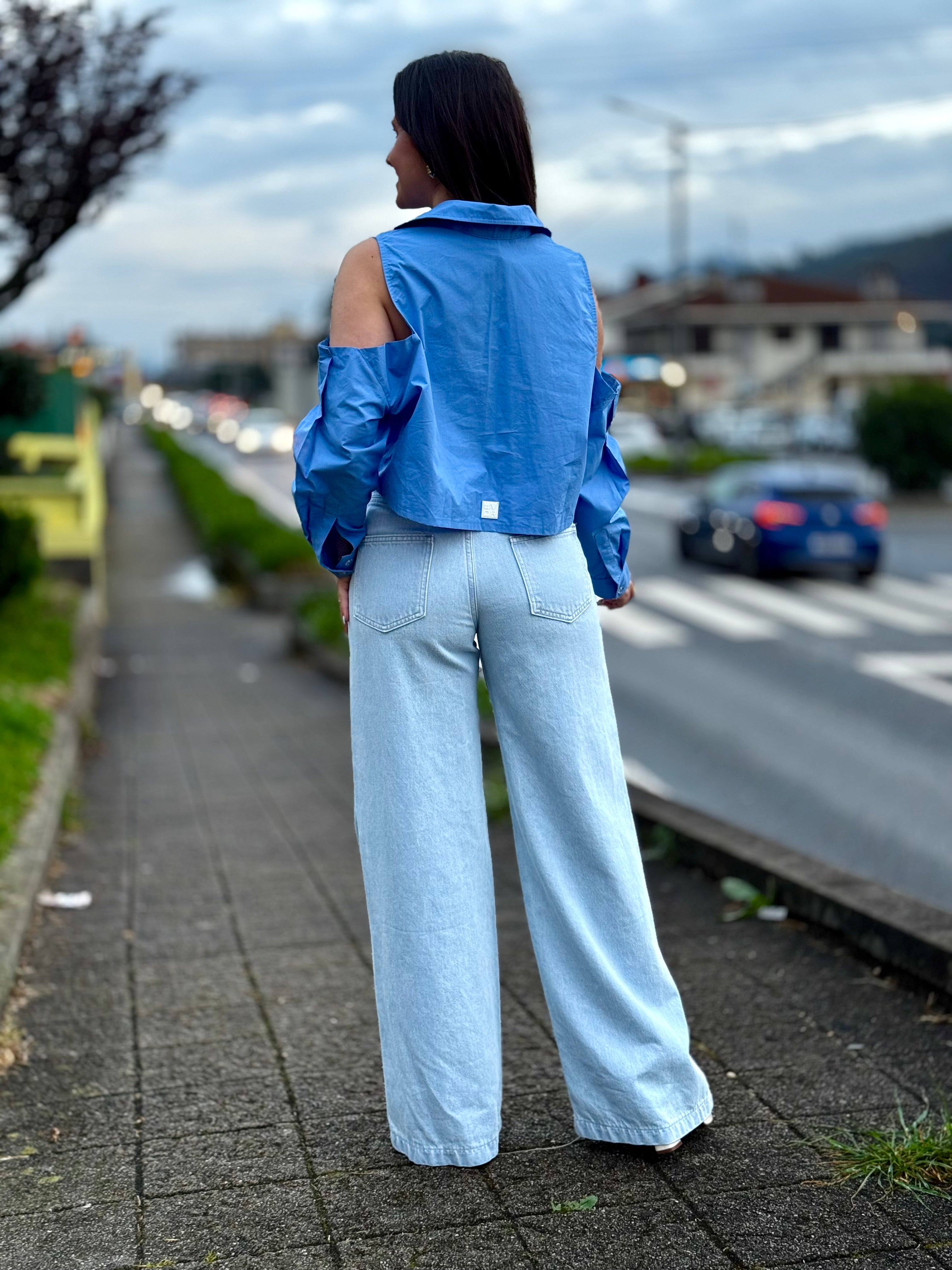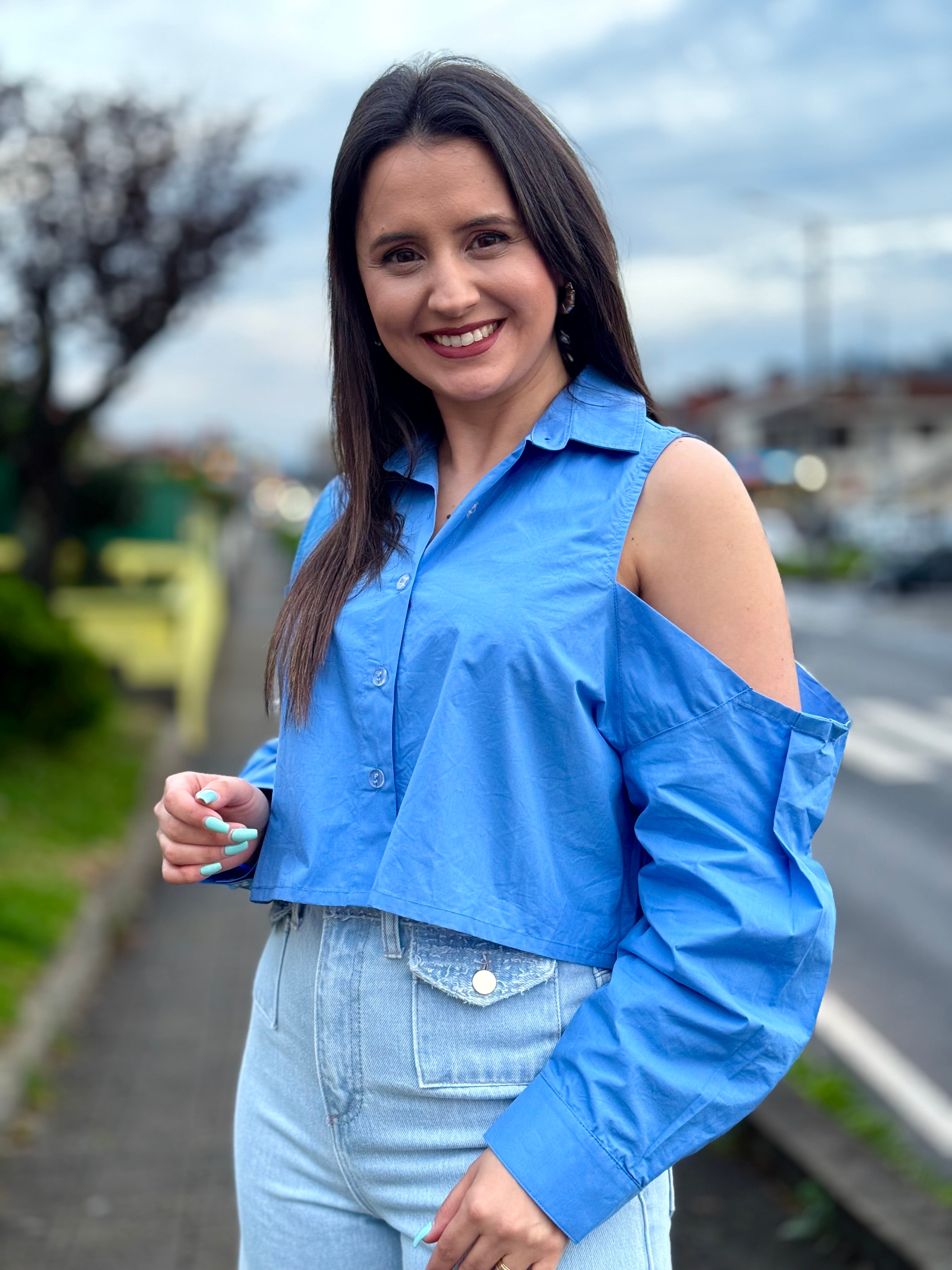 O tom azul vibrante confere um toque de cor marcante ao look, perfeito para composições modernas e elegantes, desde o dia a dia até produções mais arrojadas.