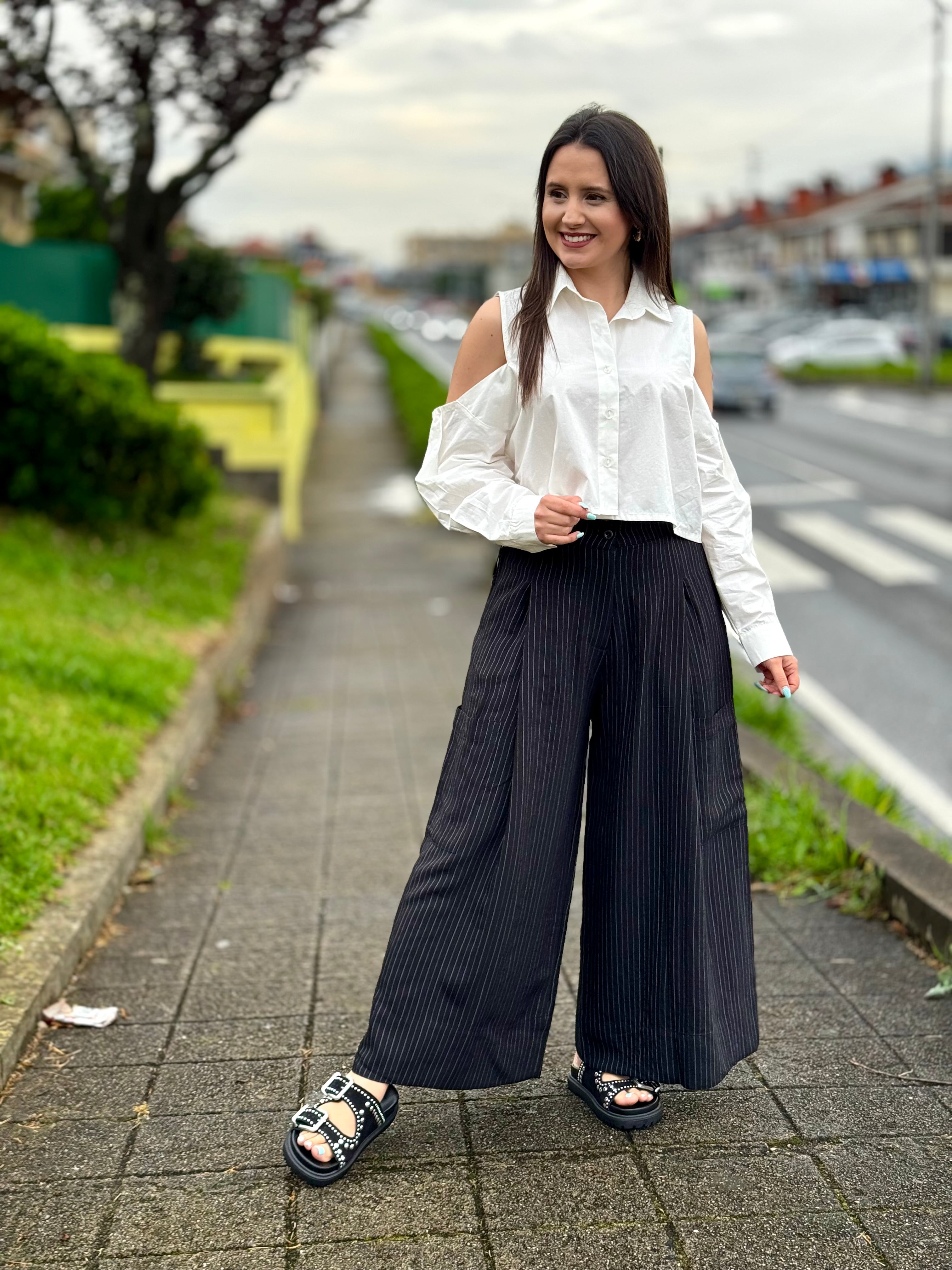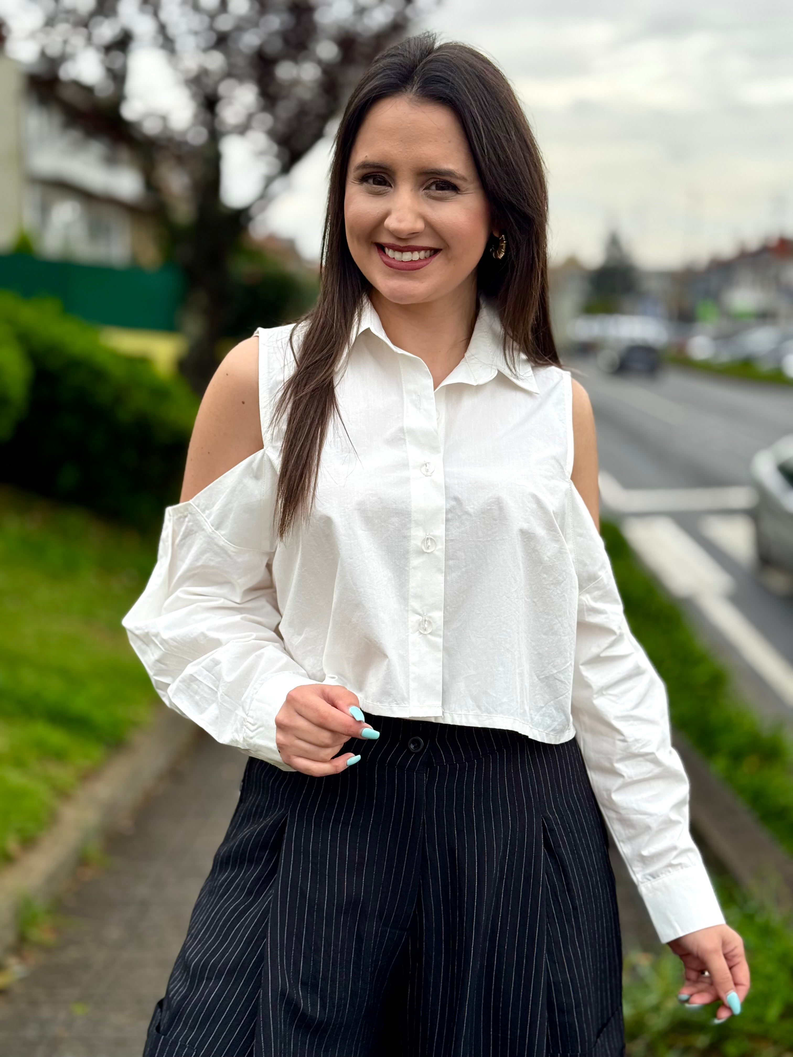 Esta camisa cropped alia irreverência e frescura, sendo a peça ideal para quem gosta de ousar com estilo. Com um corte moderno e um design arrojado de ombros descobertos, garante um visual contemporâneo e cheio de personalidade.