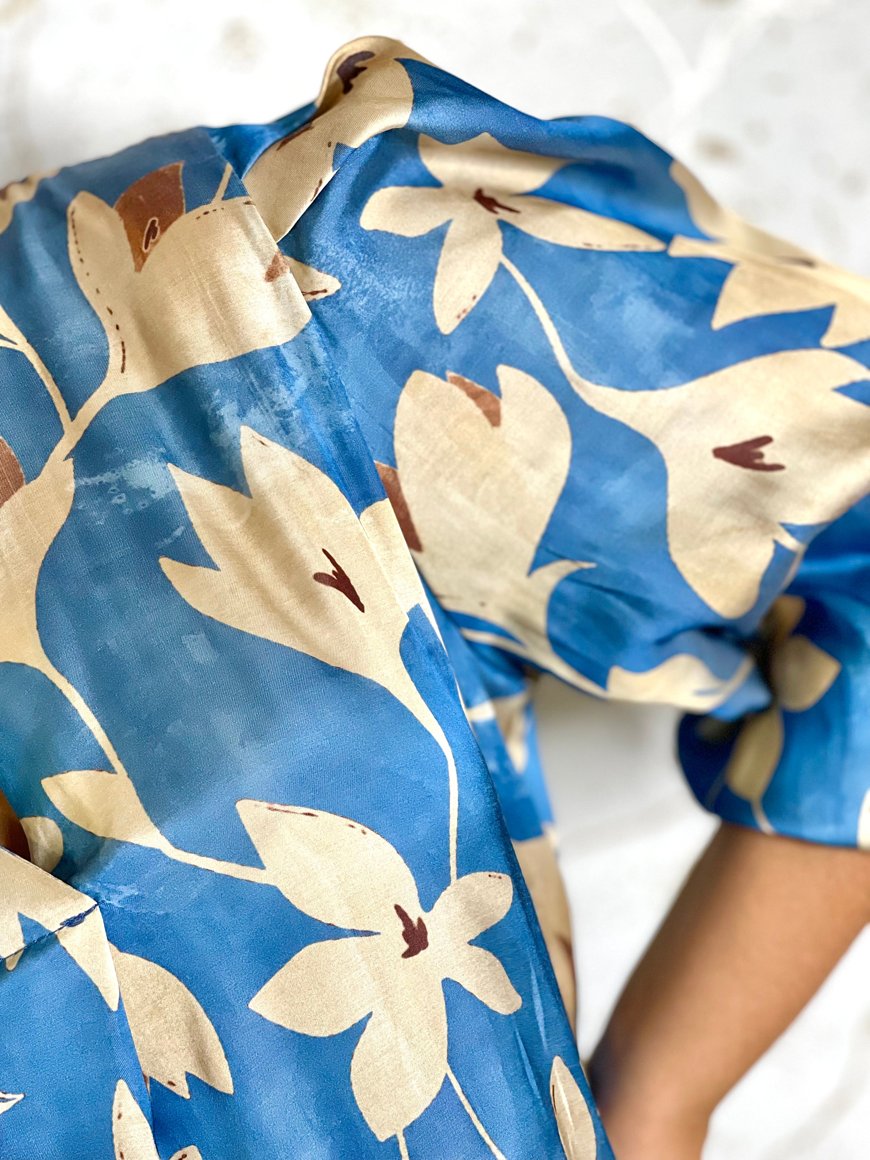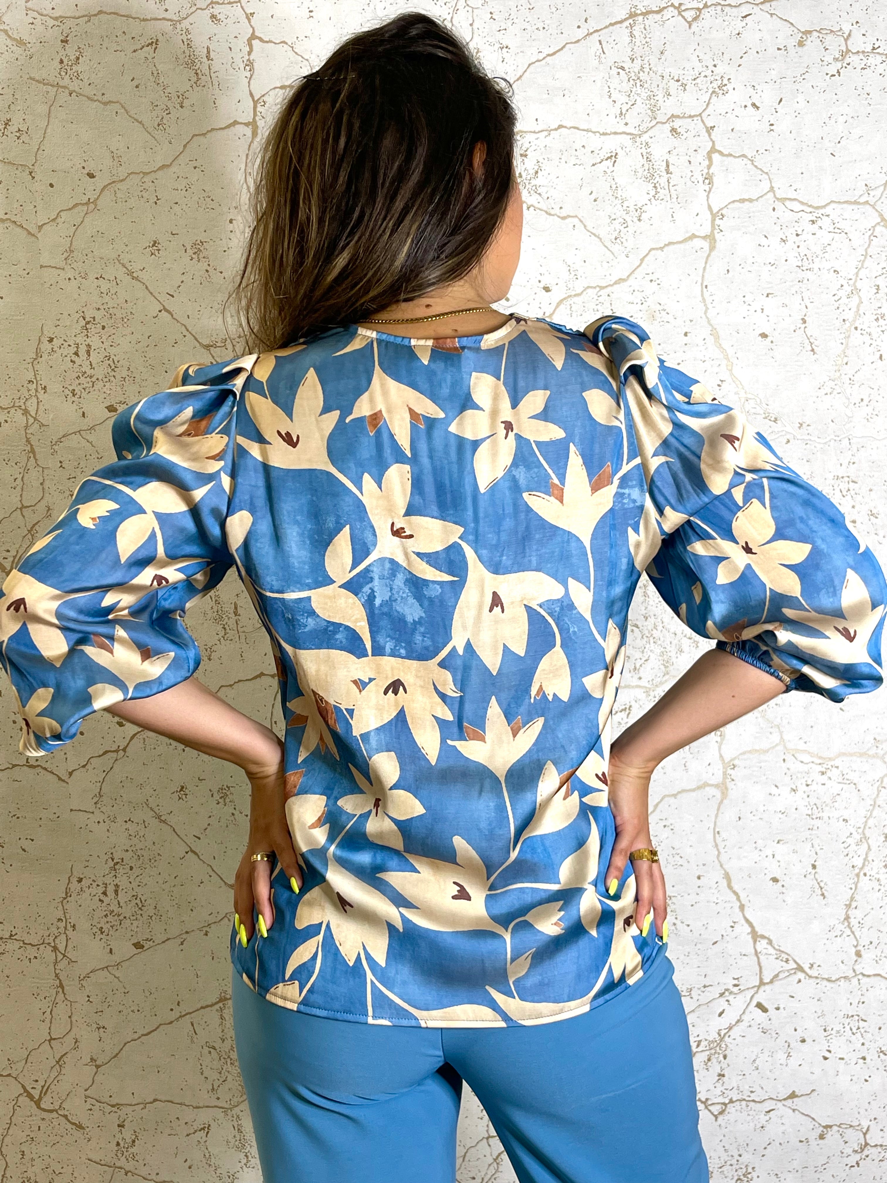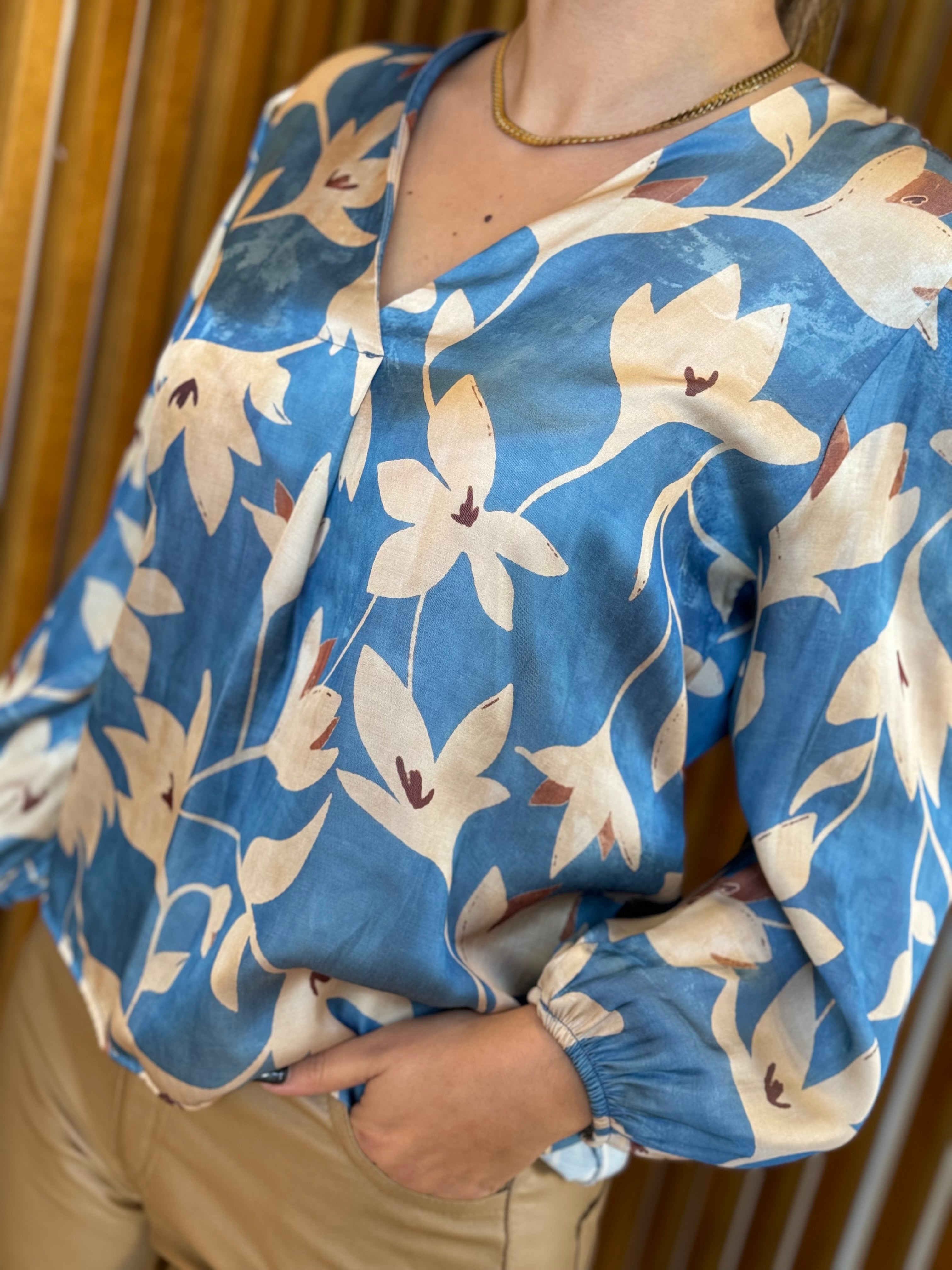 Blue floral pattern blouse